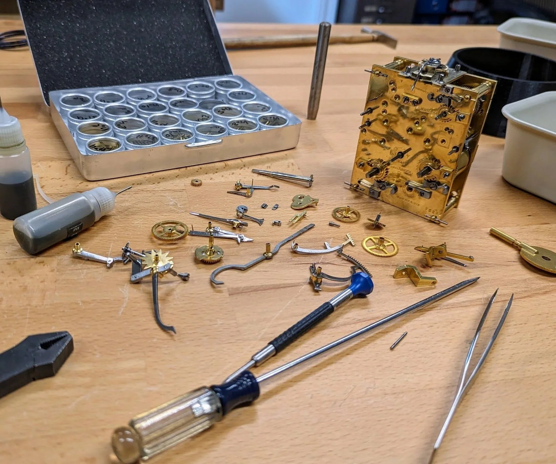 Many of our customers have been told before that their clock can’t be fixed, parts are not available, or even their clock isn’t worth repairing. Parts can almost always be sourced or even made where required by our horologists in our fully equipped workshop.